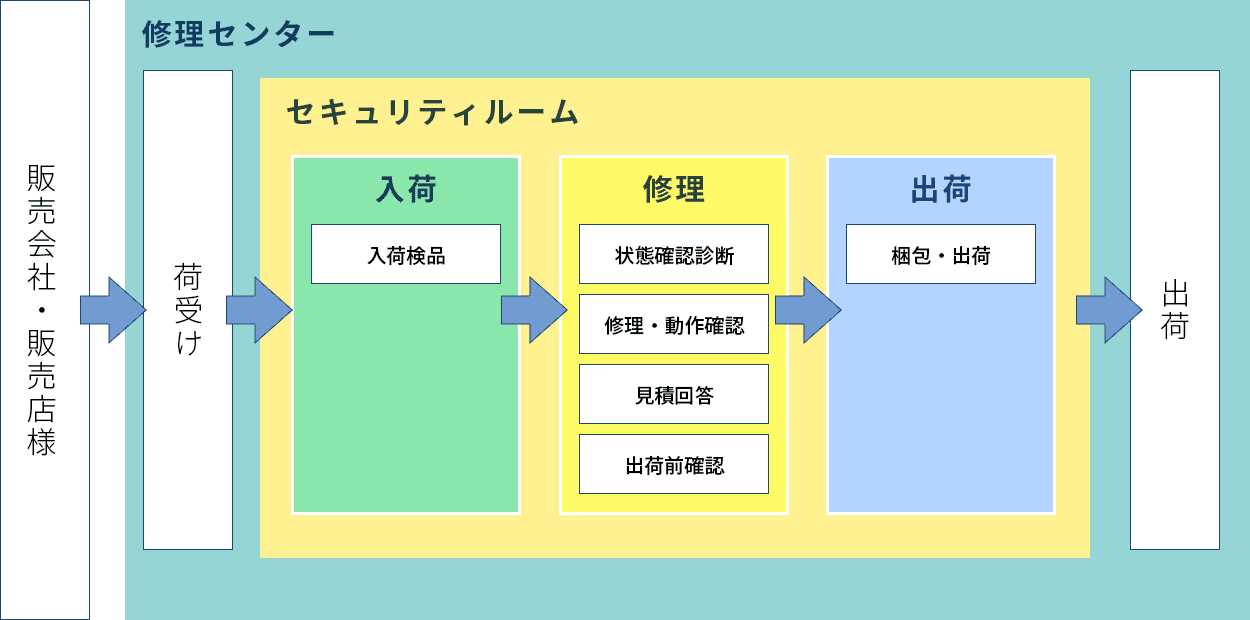 大崎では、販売会社様・販売店様経由でのパソコン製品の修理事業(引取修理)をおこなっており、修理ご依頼品の入荷業務、修理業務(診断・見積・修理)、修理完了後の出荷業務までワンストップでの対応が可能です。